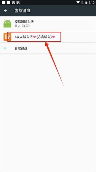 2、软件将调到键盘设置界面,将输入法设为友友输入法。