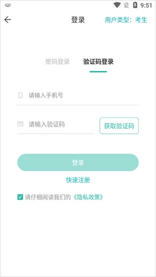 1、第一步,打开潇湘成招本应用,进入注册界面,然后选择对应的用户类型——考生或管理员;