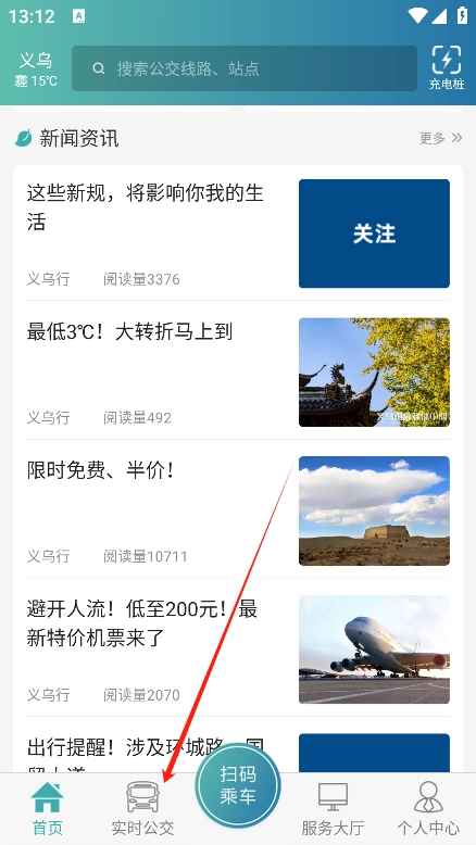 公共交通查询服务:为市民提供义乌市内公交、地铁等公共交通的实时动态信息,涵盖公交线路详情、运营时刻表以及个性化乘车方案等内容,助力市民规划出最便捷的出行路线。