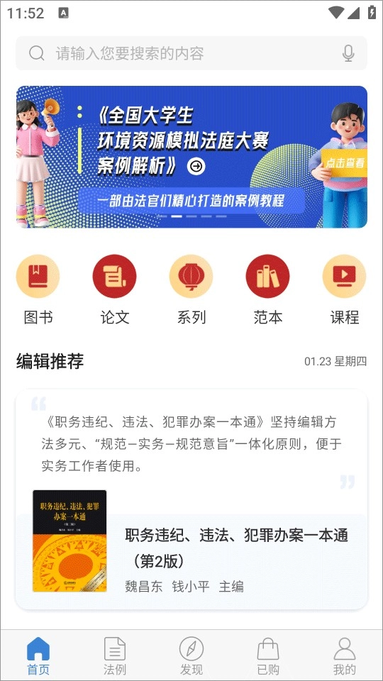 数千种法律专业电子书,内容涵盖法律释义、学术、实务、教育、考试、普法、行业报告、人文社科等领域,支持全文本检索、试读、划线、笔记、分享和复制等功能。