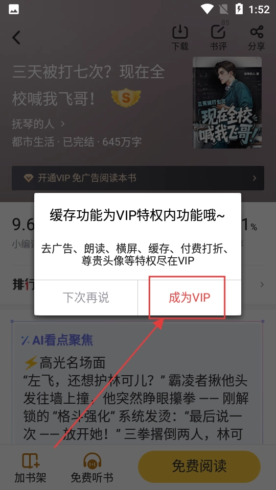 3、若需VIP权限,会弹出提示框,若要开通VIP,点击【成为VIP】。