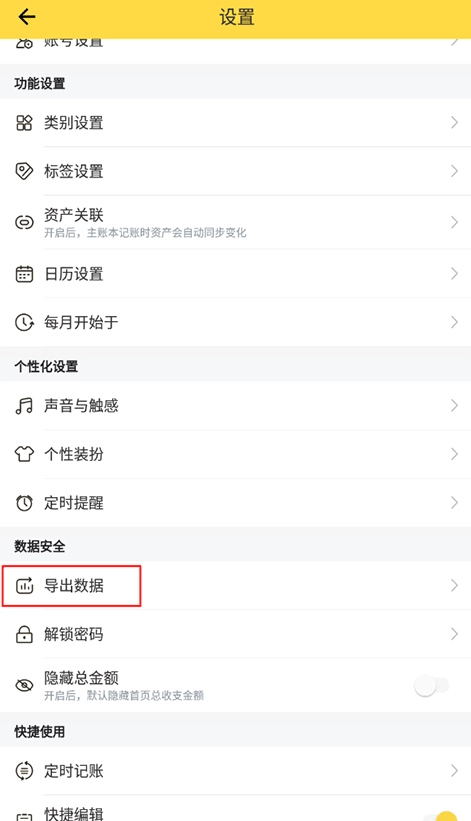 2、接着进入我的板块,点击“设置”选项,下滑找到并点击“导出数据”即可。