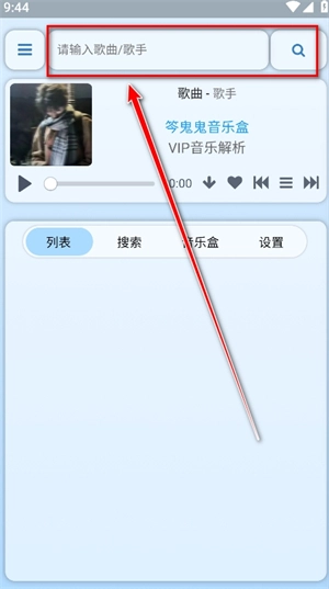 2、在搜索框输入歌曲/歌手,然后点击放大镜。