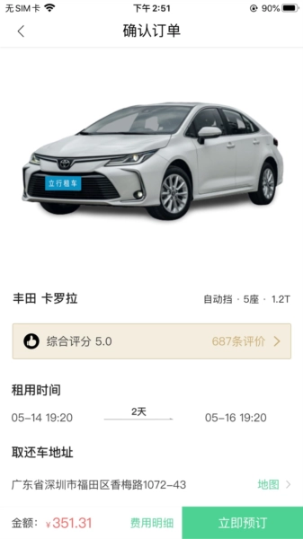 一键预订,车型分类清晰明了,价格排序直观便捷,随时随地轻松下单;用车流程、违章理赔、费用详情简单清晰,让您用得舒心,开得放心。