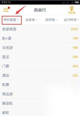 2、点击特价类型,即可了解所有的特价信息,包括机+酒、当地游、签证、门票等等。