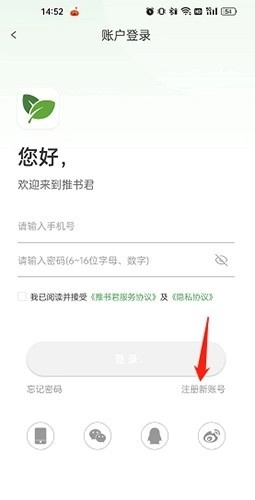 2、点击“注册新账号”选项。