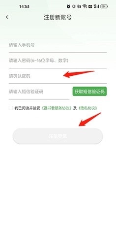3、输入账号、密码以及验证短信,点击“注册登录”按钮即可。