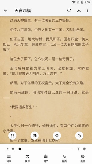 字体、亮度、背景统统可以设置,多种阅读主题背景、夜间模式、翻页效果,根据您的阅读习惯,可任意切换。