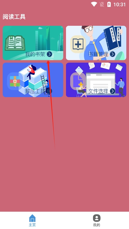 3、来到主页点击我的书架