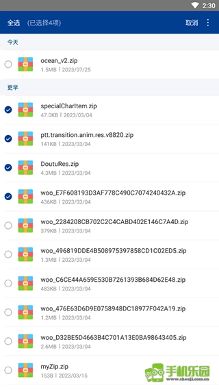 2、长按压缩包可以批量选择