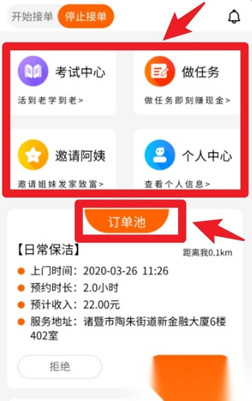 3、在当前界面,您可以进入订单池、任务中心和考试中心等模块,便于随时处理订单、完成任务以及查看相关信息。