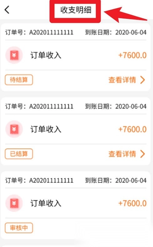 4、收支明细页面清晰呈现订单收入情况,支持按状态分类查询,方便日常财务管理。