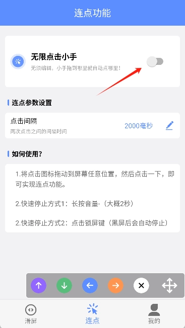 1、打开软件,利用连点功能来进行快速、连续的点击。