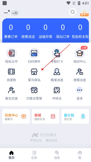 菜鸟包裹侠为快递员提供包裹揽收与派送服务,让用户能直观体验平台打造的贴心服务,涵盖上门取件、驿站上门、抢订单等功能,助力用户在平台上获取更多订单。平台支持各大快递公司的用户注册,统一进行派单,还为新人快递员准备了超多必备商品,用户可直接在平台商城购买。