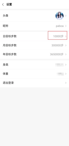 2、在设置页面中点击目标步数;