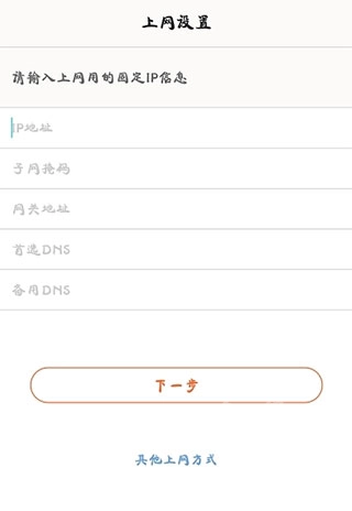 3.若为固定IP上网,需填写运营商提供的固定IP、子网掩码、网关和DNS。