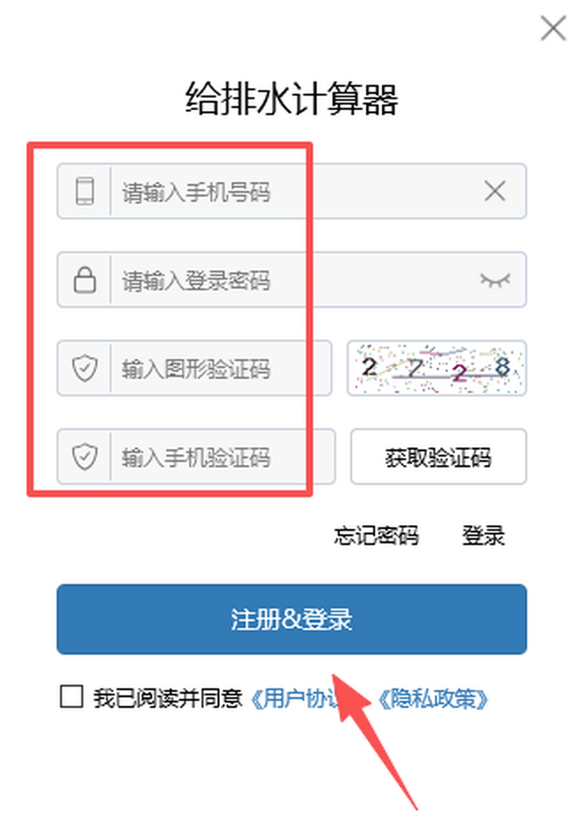 2. 输入号、密码及验证码,点击【注册或登录】完成操作。