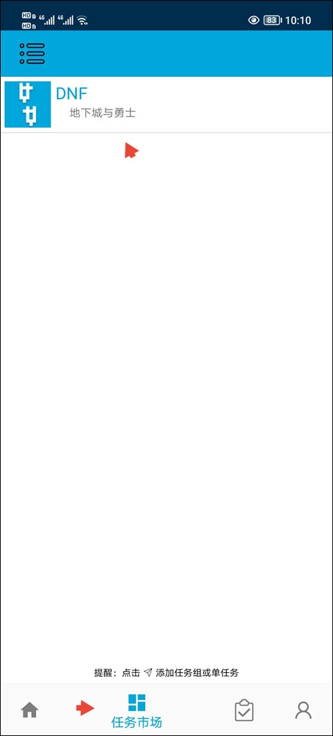 3. 登录成功后,进入“任务市场”板块,选择“DNF”专区。