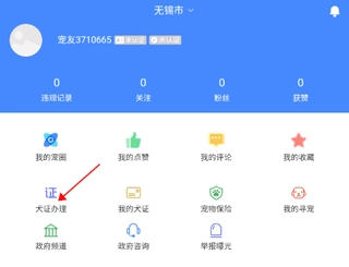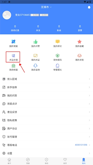 打开App,进入“我的”页面,点击“犬证办理”选项。