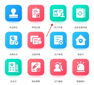 选择城市后,点击“犬只年审”选项,按提示完成后续流程即可。