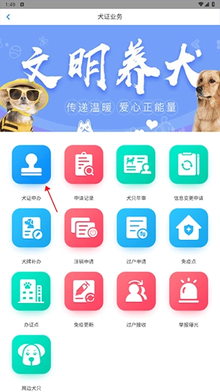 打开App,进入“我的”页面,点击“犬证办理”。