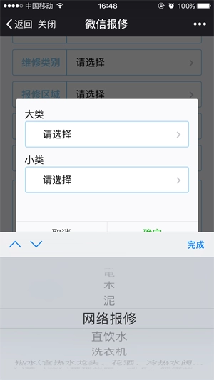 3. 点击“我要报修”,按照实际情况依次填写维修类别