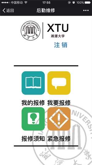 2. 进入首页后,点击“生活应用”模块,选择“在线报修”,跳转至后勤维修系统;