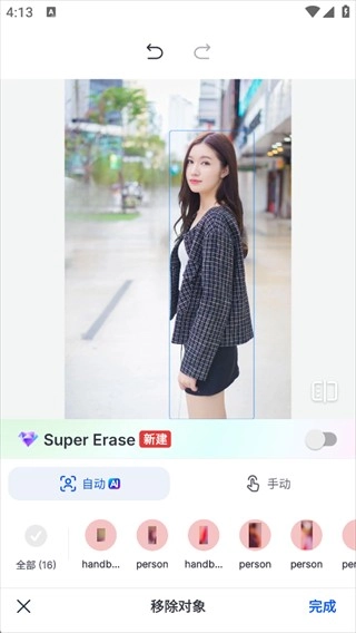 1、首先在相册中上传一张照片,以图中照片为例,可以选择AI的自动去除功能,软件会自动检测除主角外的所有背景人像。
