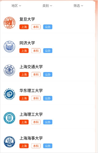 2、系统会呈现全国大部分高校的名单,可依据地区、院校类别(例如综合类、理工类、师范类等)开展高效筛选,从而迅速找到目标院校。
