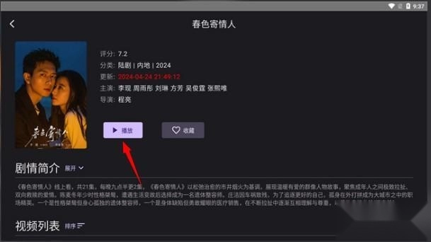 2、在搜索结果中找到目标节目,点击"播放"按钮即可开始观看。