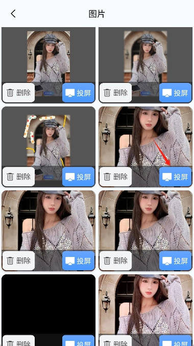 - 图片投屏:可从本地相册中选取多张图片,投放到大屏幕进行播放。