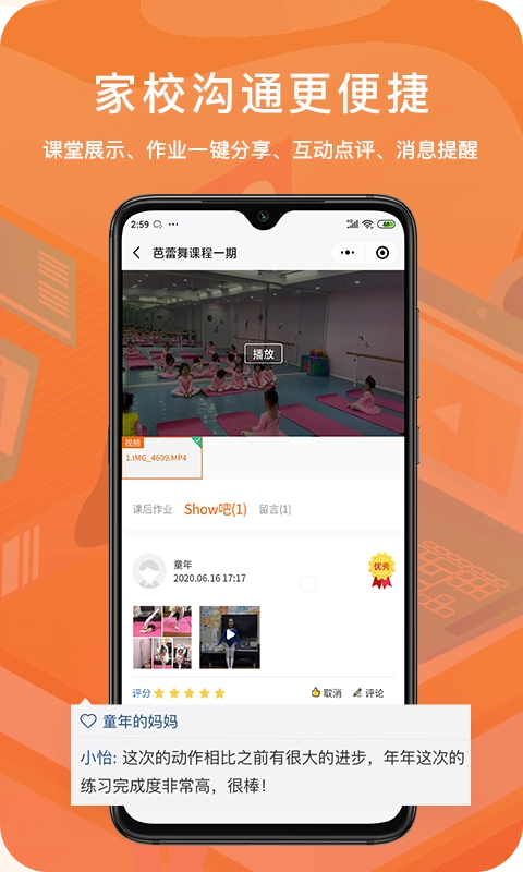 (2)课业点评:就能轻松点评学生课堂表现,让家长随时了解孩子学习状态,激励学员不断进步。
