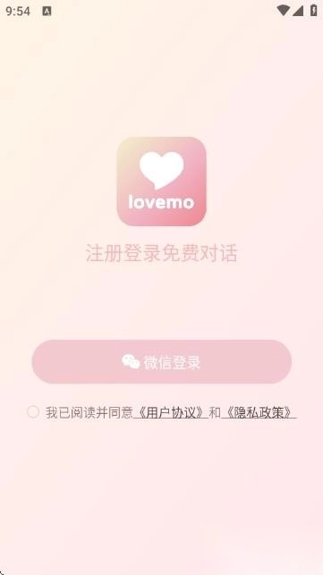 3、接着进入软件的登录首页,界面如下;在此处可借助微信完成快捷登录。登录成功后就能解锁对话功能。