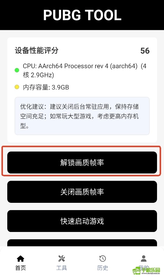 首先我们进入到主页面时,点击【解锁画质帧率】。