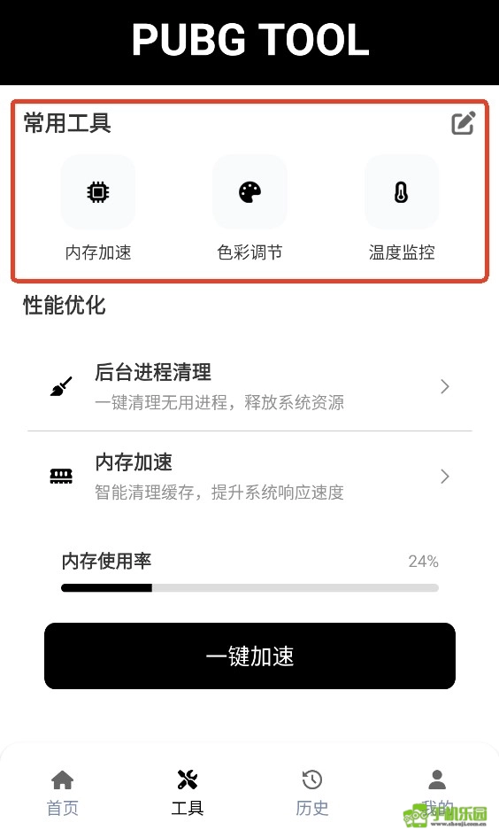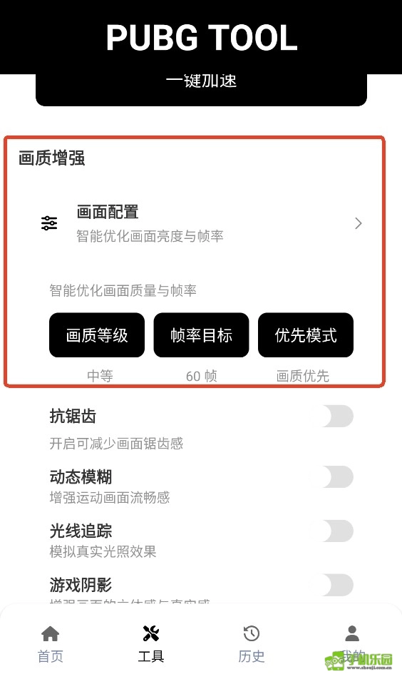 点击之后我们就会跳转到工具界面,在这里我们可以设置性能、画质、系统等。