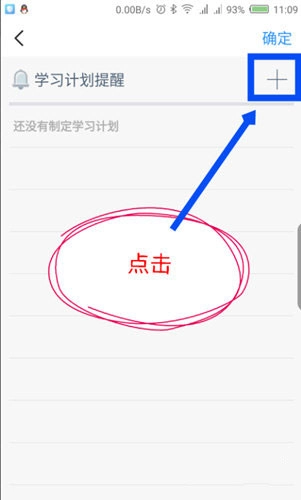 进入学习计划提醒页面后,点击右上角的“+”号,开始添加新计划;
