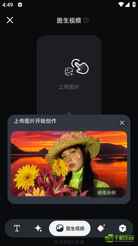 3、图生视频功能:上传清晰图片后,在提示词框中描述所需动作,接着挑选合适的特效模板,即可生成动态视频。