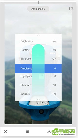 Snapseed 里的多数调整功能都是如此操作的:在图像区域垂直滚动来选定参数,接着水平滑动来调整参数数值。