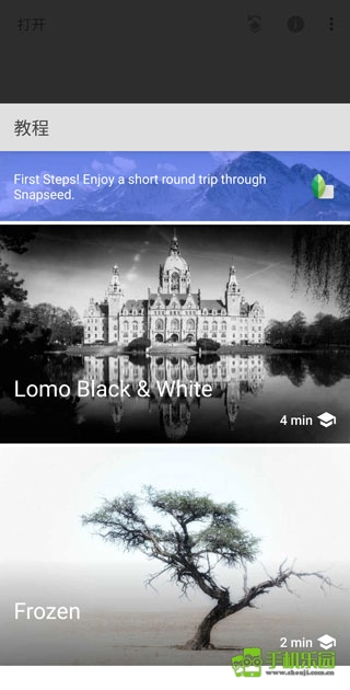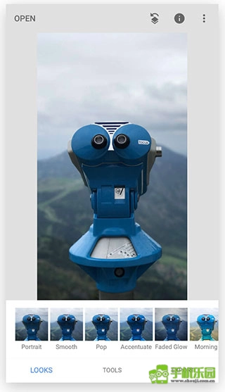 若要开始编辑操作,可点击工具选项卡。该选项卡会展示Snapseed的全部编辑工具。你可以水平滚动屏幕来浏览各个选项,之后点击相应选项即可完成选择。
