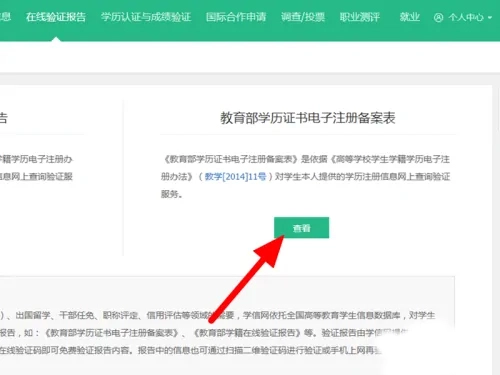 在个人主页找到“学历认证与成绩验证”板块,点击“查看”按钮。