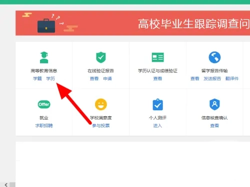 进入个人高等教育信息页面后,点击“学历”栏目。