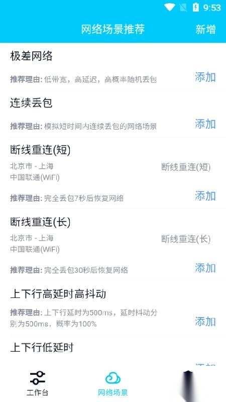 4、在所有的场景中都可以进行网络测试,用户可以开启自己需要的测试模式。
