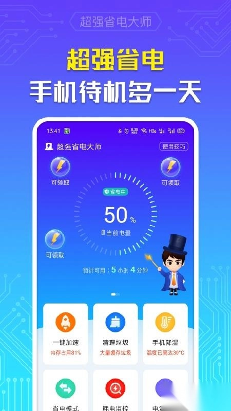 超级省电节能版是一款非常实用的生活工具类软件,在这款软件里,你能体验到独特的功能,通过它可以有效延长电池寿命,让设备使用更持久、更高效。软件能自动优化电池性能,带来与众不同的实用功能,轻松满足各类需求,为你提供便捷又省心的使用体验。