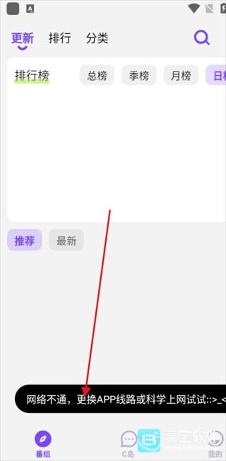 1、如果你之后进入软件时页面显示不完整,并且出现【网络不通,更换线路或科学上网试试】的提示;