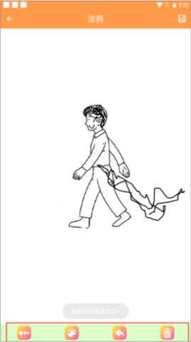 2、选好后点击进入创作页面,下方的字体大小、画笔颜色、返回以及删除等功能,均为制作涂鸦作品的工具。
