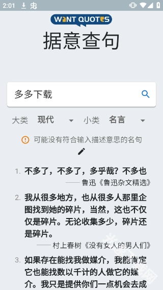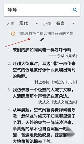5、部分类型句子搜索可能没有相应结果,页面也会提示。