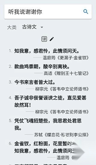 3、下图即为检索的效果,即便输入一句普通的话语也能给出超多美妙华丽的句子