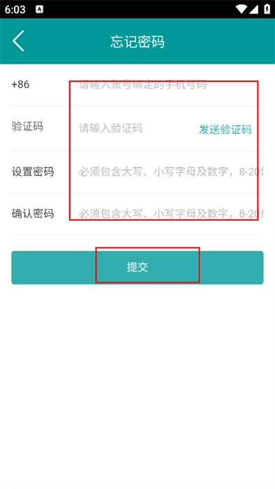 3、接下来,你需要重新填写自己的账号登录信息,然后点击提交,就能完成密码重置了。