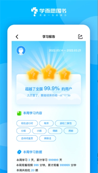 3、实时记录学生的学习轨迹,生成对应的学习报告并定期推送给学生,帮助他们更全面地了解自身的学习状态。
