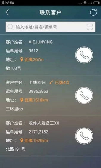 2、联系客户:每日待送订单由近及远排序,一键拨号,省时省力。